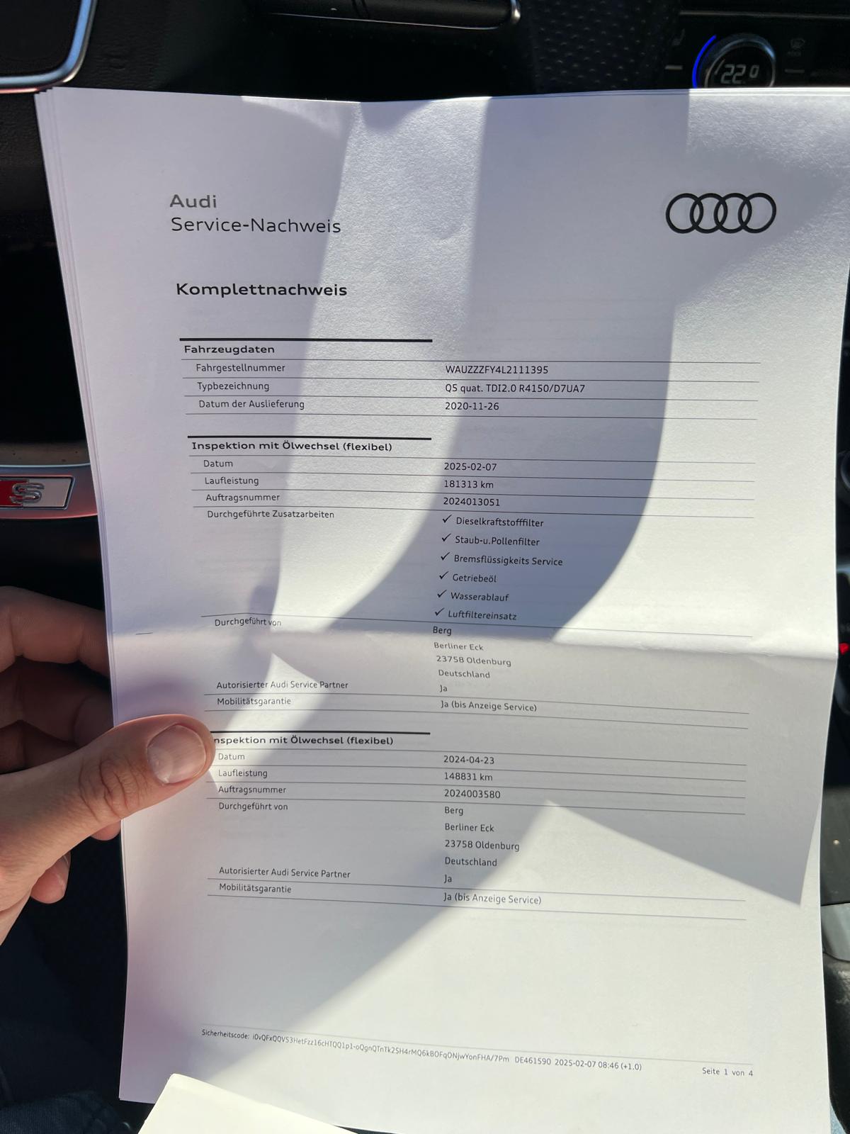 Letzter Service: 02/2025 bei 181313 Km