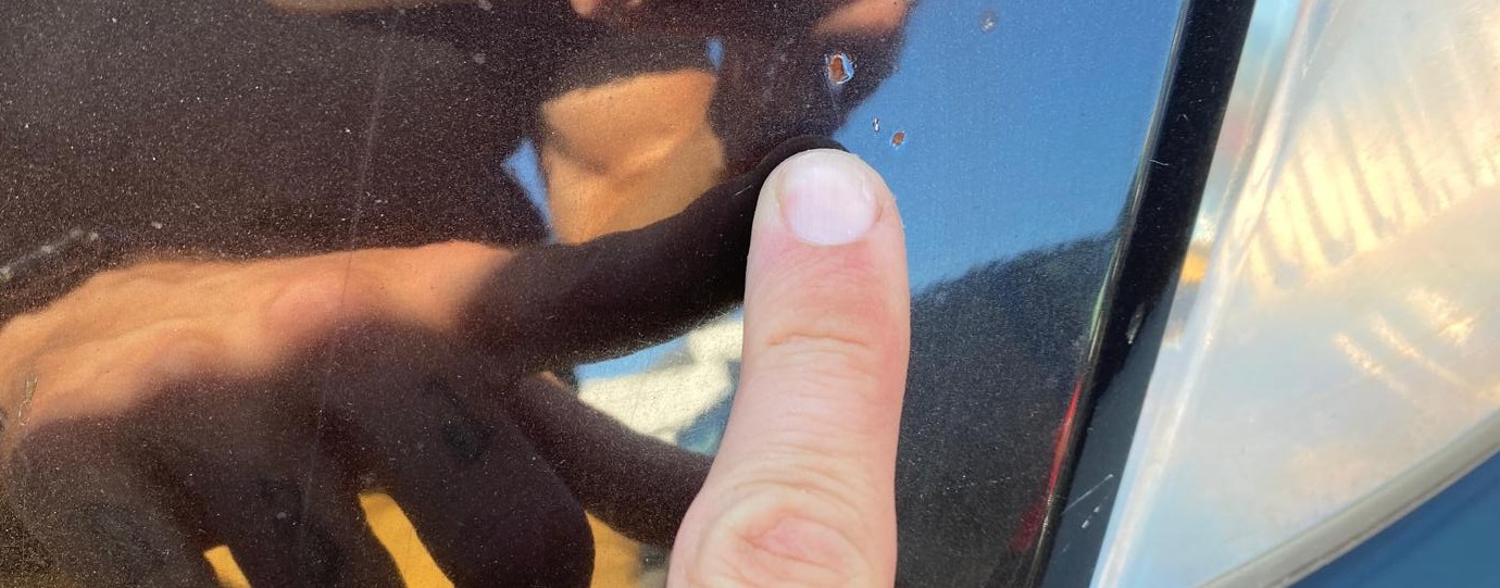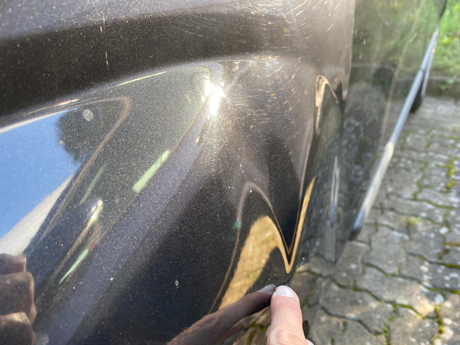 Sonstiges: Luft im Lenkrad; Kotflügel vorne links beschädigt (s. Foto); Leiste an Heckklappe fehlt