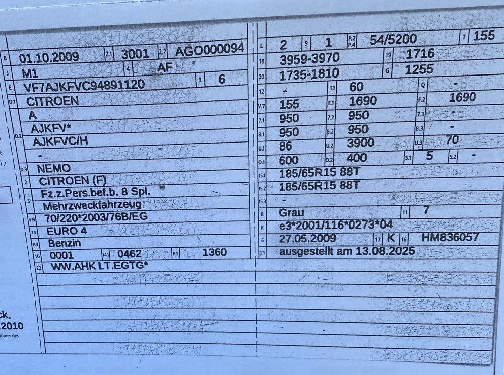 Erstzulassung: 01.10.2009