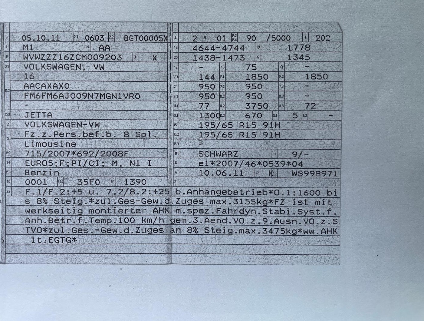Erstzulassung: 05.10.2011